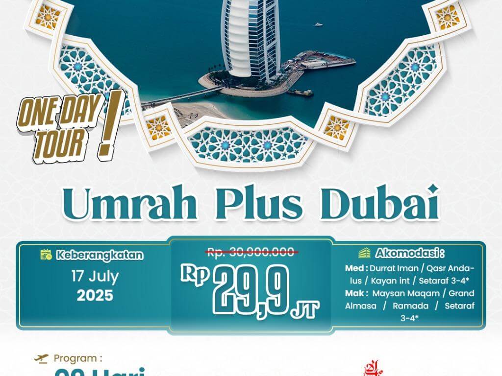- Pelunasan dan Berkas lengkap maksimal 30 hari sebelum keberangkatan. Kecuali Visa Aqsho H-60.